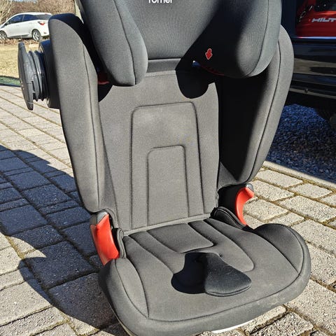 Myydään Britax Römer Kidfix 2 R turvaistuin lapsille, painoluokka 15–36 kg. Istuimessa on selkänoja ja sivutörmäyssuoja, säädettävä pääntuki sekä istuinosan koroke. Väri on musta. Turvaistuin kiinnitetään autoon auton turvavyöllä ja Isofix-kiinnikkeillä, jos autossa on valmius niille. Soveltuu käytettäväksi kasvot menosuuntaan isommille lapsille, jotka ovat siirtyneet turvakaukalosta tai pienemmästä turvaistuimesta. Istuimen mukana on erillinen Britax-suojus auton istuimelle kuvien mukaisesti.