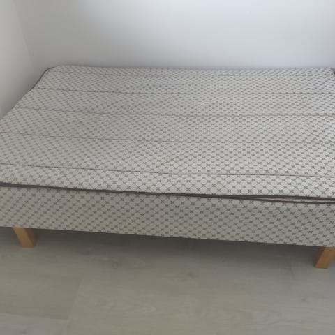 Hyväkuntoinen 120cm sänky petauspatjan (paksuus 7cm) kanssa. Siisti kokonaisuus, vähällä käytöllä, vierassänkynä ollut.