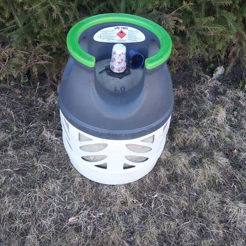 Kuvan mukainen 10 kg täysi kaasupullo tehtaan sinetillä. Käteisellä, vain nouto .