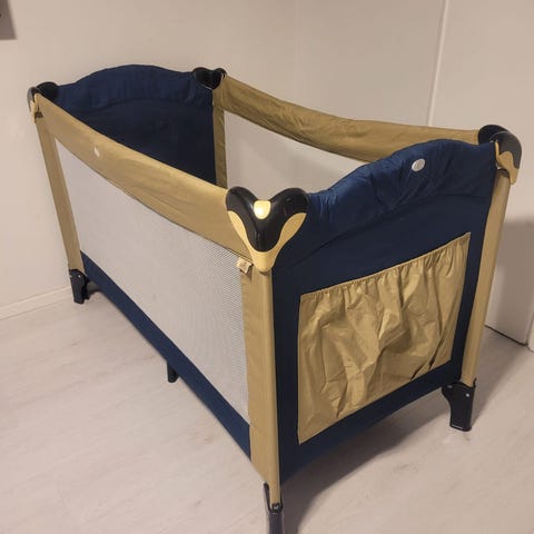 Gargo matkasänky. Yhden jalan kiinnitystarra puuttuu. Ei hsittaa varsinnausta käyttöä, vaikuttaa vain kootessa,purkaessa.