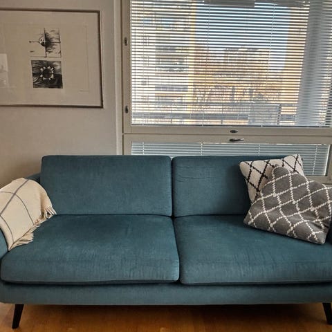 Myydään hyvässä kunnossa oleva melimelin vihreä sametti sohva.