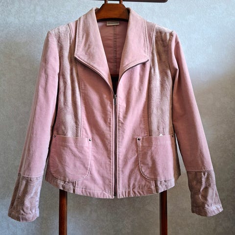 H&M naisten jakku, koko 38. Sopii 36 kokoa käyttävälle parhaiten. Väri vaaleanpunainen. Materiaali pääosin polyesteriä. Jakussa on kauluskäänteet, yksi nappikiinnitys edessä sekä etutaskujen läpät. Vuorillinen malli, jossa kevyesti muotoilevat leikkaukset. Soveltuu arki- ja toimistokäyttöön sekä juhlavampiin asukokonaisuuksiin.