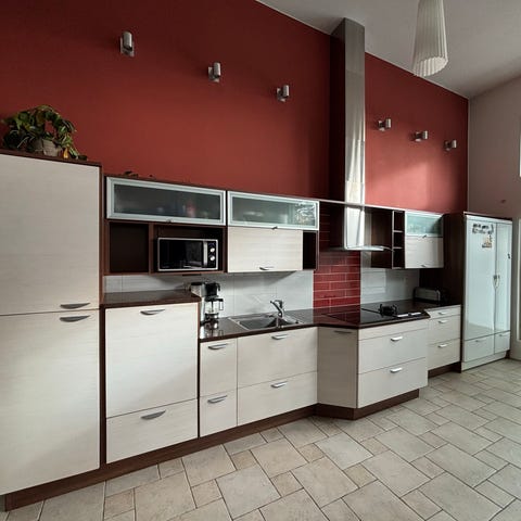 Sisältää kaapistot, tasot, sekä kodinkoneet.