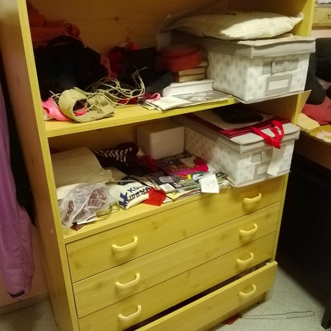 Annetaan kirjahylly, tavarat ei kuulu mukaan. Keskimmäinen osa mennyt