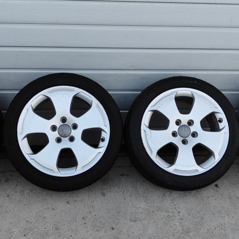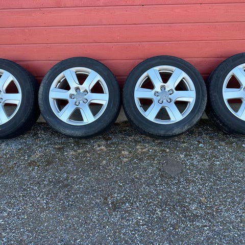 Hyväkuntoiset alumiinivanteet heikoilla kesärenkailla, ei montaa milliä oo pintaa, ajelee vielä hetken. Olleet audi a6 alla