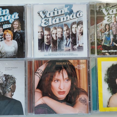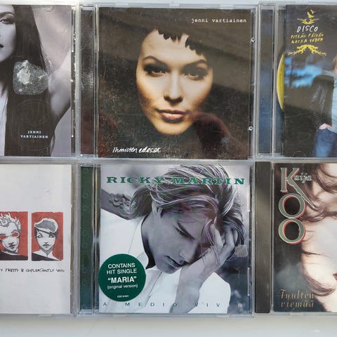 Kwan, Anssi Kela, Celine Dion, Happoradio x 2 ja Tik Tak. Hinta 2e/kpl tai 10e koko satsi.