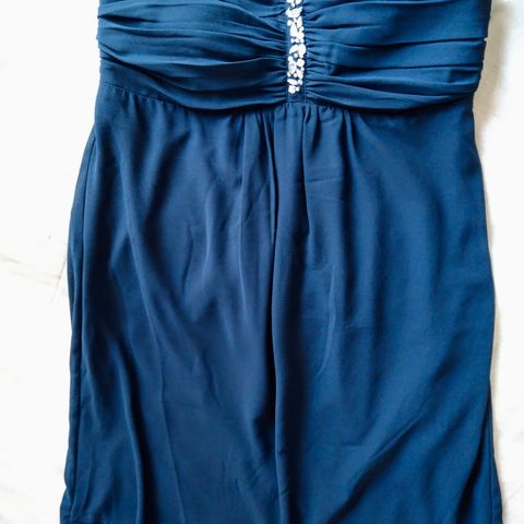 Siisti navysininen juhlamekko, käytetty kerran tai kaksi. Sivussa vetoketju. Edessä pientä jälkeä, en ole koettanut pestä.