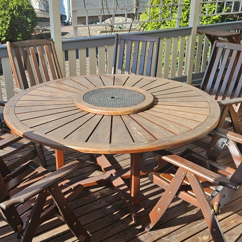 Pöytä on hyvässä kunnossa ja tuolit mukavat istua. Kompakti koko, mutta silti käytännöllinen arkeen. Pöydässä mahtuu syömään jopa 4hlö tarvittaessa