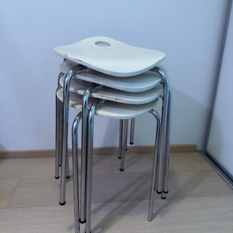 Myydään itsetehty tukeva valkoinen jakkara. Halkaisija noin 30,5cm ja korkeus 48cm.