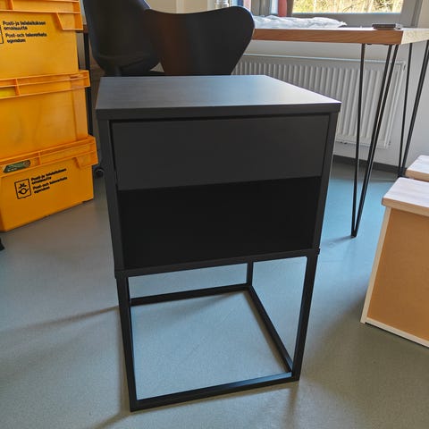 Myydään siisti ja moderni IKEA VIKHAMMER pöytä. Sopii hyvin yöpöydäksi, sivupöydäksi tai pieneen säilytykseen.