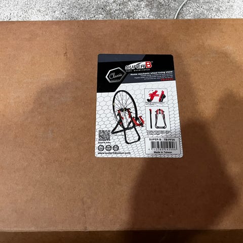 Super B TB-PF25 vanteiden oikaisuteline kotimekaanikolle. Teline soveltuu polkupyörän etu- ja takapyörien suoristamiseen ja keskiöintiin. Rakenne on kokoontaitettava säilytyksen helpottamiseksi. Telineessä on säädettävät pidikkeet.