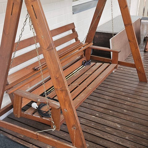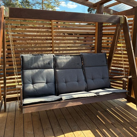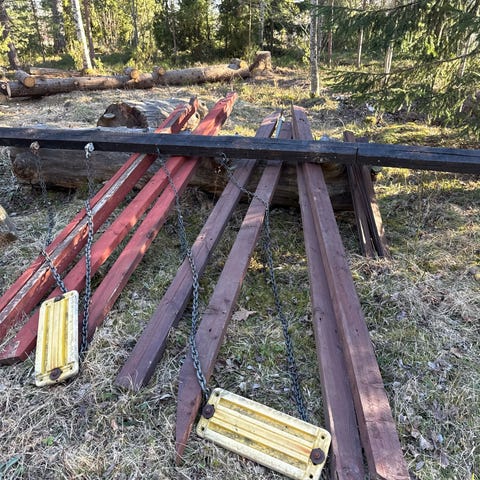 Valkoinen puinen pihakeinu