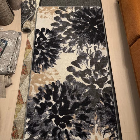 Myydään meille tarpeettomaksi jäänyt käytävämatto. Ollut meillä käytössä makuuhuoneessa n. vuoden verran, hyvässä kunnossa. Irtoroskaa voi vähän olla. Pohjassa pieniä kumikuvioita, jotka voivat auttaa pitämään paikallaan. Ostettu Sotkasta. Mitat 80 x 200 cm. Väri: vaaleanruskea kuvioilla