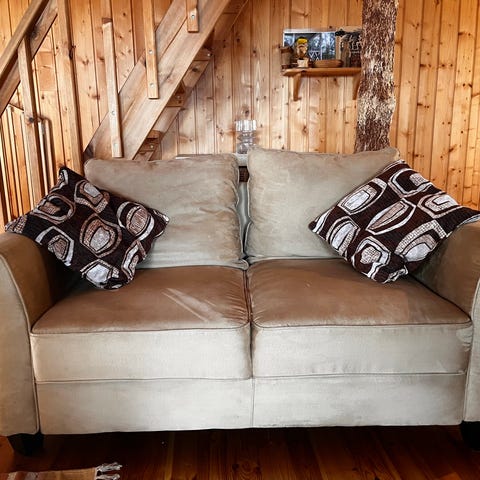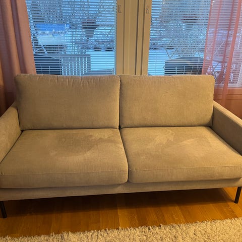 Pikaisesti kävin juuri tekstiilipesurin kanssa läpi, mutta tarkempi puhdistus/jynssäys jää uudelle omistajalle.