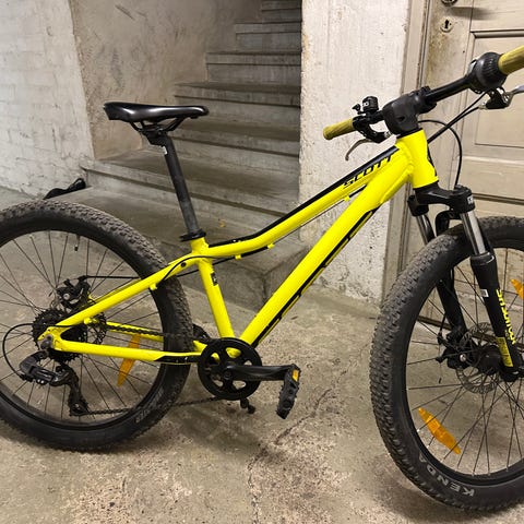 lastenpyörä 24" punaisella rungolla. Pyörässä on 24 tuuman renkaat, suoralla tangolla varustettu ohjaamo sekä jalkatuella varustettu runko. Edessä ja takana on lokasuojat, renkaissa heijastimet ja polkimissa heijastimet. Pyörä soveltuu lapselle, joka käyttää 24 tuuman kokoista lastenpyörää arki- ja harrasteajoon.
