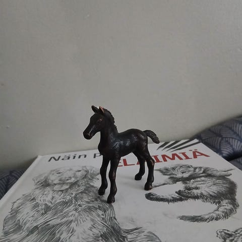 Muovinen hevosfiguuri, väriltään harmaa-musta ruskealla hännällä. Sopii leikkeihin, keräilyyn tai koristeeksi. Hevonen esitetään liikkeessä, ja siinä on yksityiskohtaisia piirteitä, kuten harja ja kaviot. Mulla on myös muota schleichfiguureja myynnissa ja voin myydä ne pakettina yhdessä vähän halvemmalla.