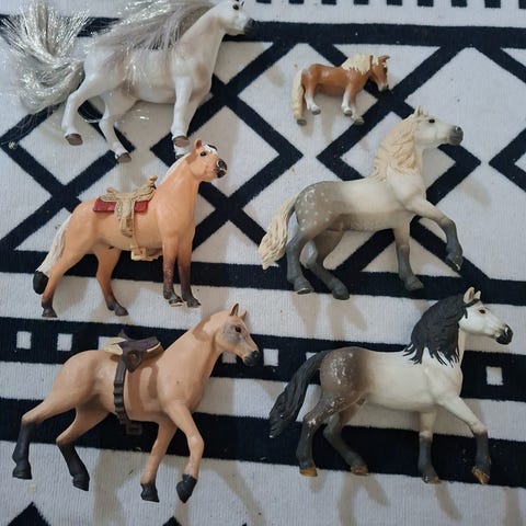 Muovinen hevosenvarsan lelufiguuri. Väriltään musta. Pieni seisova hevosenvarsa, sopii esimerkiksi lasten leikkeihin, kokoelmiin tai rekvisiitaksi. Mulla on myös muita schleich figuureja myynnissä ja voin myydä ne pakettina yhdessä vähän halvemmalla.