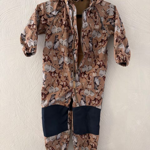 Kuvanmukainen lasten työkone kuosinen haalari.
