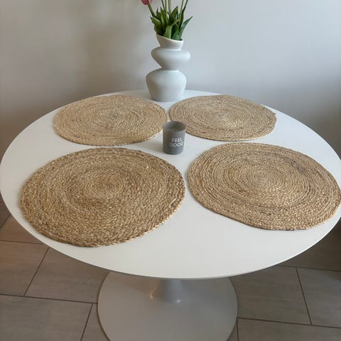 VARATTU. Myydään pieni pyöreä pöytä kuin uusi, ei käytönjälkiä. Myös kuvan tuolit ja matto ovat myynnissä.