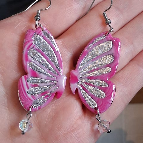 Upeat käsintehdyt perhoskorvakorut fimomassasta.