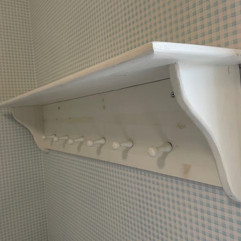Todella hyväkuntoinen ja ehjä, puinen naulakko lapsille. Kolme väliä.