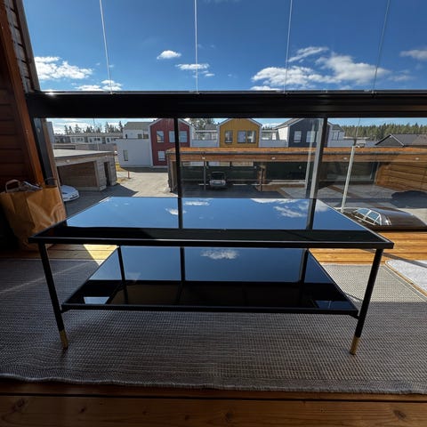 Lasihyllyille voit sijoittaa kauniita kirjoja, viherkasveja ja muita koriste-esineitä. Alemman pöydän hyllyä voit käyttää tavaroille, jotka haluat pitää helposti saatavilla.