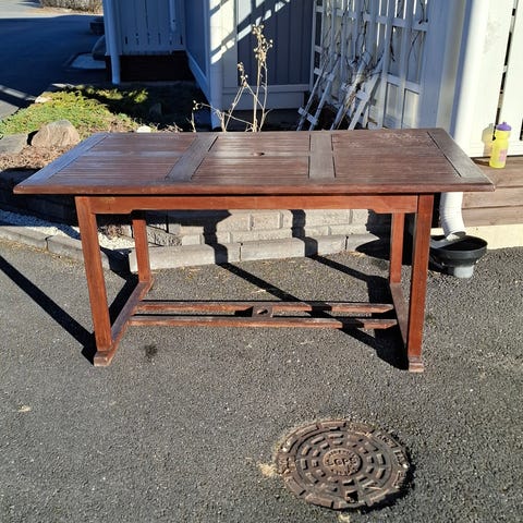 Myydään terassipöytä, tähän asti säilytetty lasitetulla parvekkeella.