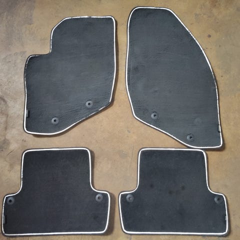 V60 vm.2015 kangasmatot. Kiinnitysreiät auton omia kiinnitysnastoja varten. Vähän käytetyt ehjät, mutta pesua vaille.