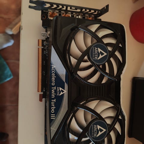 Sapphire Nitro+ -sarjan näytönohjain. Kortissa on kolmen tuulettimen jäähdytysratkaisu ja takalevyssä Nitro+-sarjalle tyypillinen muotoilu. Liitännöissä näkyy useita DisplayPort- ja HDMI-portteja, jotka mahdollistavat useamman näytön käytön. Näytönohjain sopii PCI Express -väylää tukeviin pöytäkoneisiin.