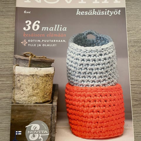 Novita käsityölehti kesä 2026. Lehdessä on neule- ja virkkausohjeita aikuisille ja lapsille.