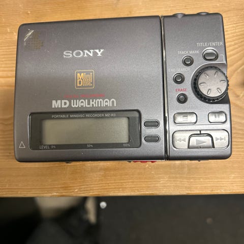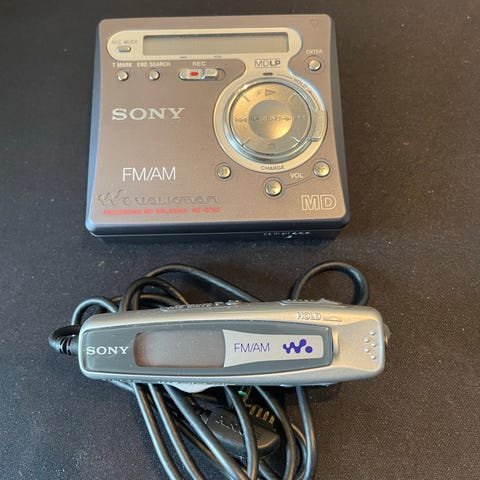 Sony MD Walkman MiniDisc-soitin. Kannettava MiniDisc-laite, jossa digitaalinen MEGA BASS -toiminto, LCD-näyttö sekä toisto- ja äänityspainikkeet laitteen etupuolella. Laitteessa on äänenvoimakkuuden säätö, kappaleiden haku- ja pysäytyspainikkeet sekä erilliset liitännät kuulokkeille ja linjasisääntulolle. Soveltuu MiniDisc-levyjen toistoon ja äänitykseen. Virtalähteenä käytetään erillistä akkua tai paristoa mallin vaatimusten mukaan.