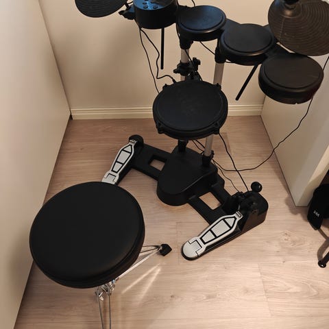 Sisältää: Itse rummut, pedaalit, kaikki tarvittavat johdot sekä penkki.