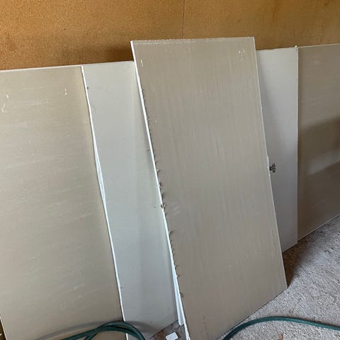 Hae pois Halltexin kattolevyt... Paketissa 6 kpl täysmittaista levyä jäljellä, valkoinen. Arviolta n 3 neliötä. Säilytetty huoneenlämmössä kaappien päällä eiliseen asti, nyt kylmällä verannolla. Hae nopsaan, osoite yv:llä.