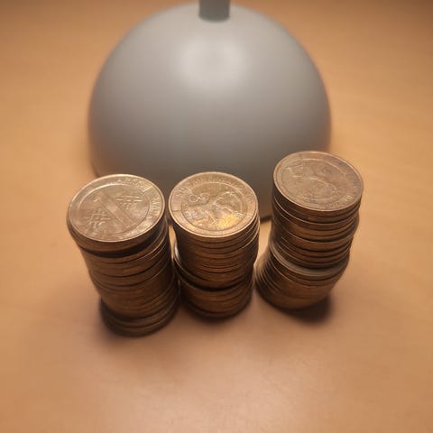 • muutama 5 markan kolikko
