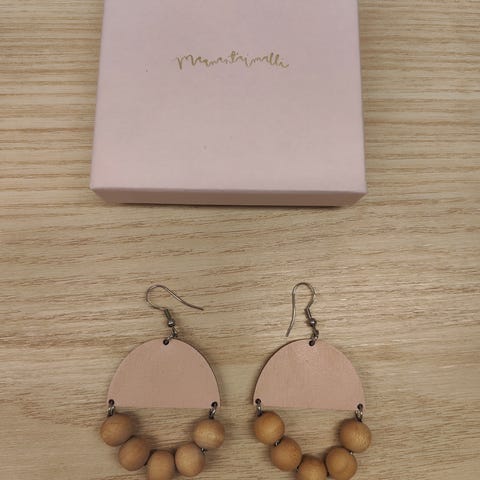 Maanantaimalli kaarella vaaleanpunaiset korvakorut, isompi malli. Käytetty kunto, pientä kulumaa/jälkeä mutta ihan hyvin käytettävät vielä