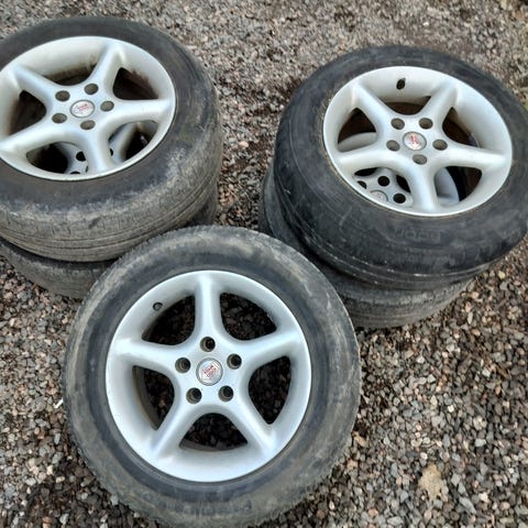 Hapettuneet Vanteet 5x110 päällä kesäkumit joista yksi ainakin on puhki. muutenkin jo kilometrejä kuljettu. Et 35