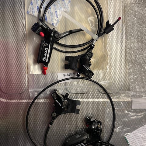 Myydään hyväkuntoiset Sram Code R hydrauliset levyjarrut. Sarjaan kuuluu etu- ja takajarru, joissa on jarrukahvat, letkut 80mm ja 170mm ja jarrusatulat. Ollut XL koon pyörässä.