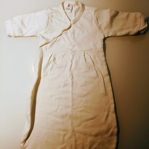Jutta Productin vauvan unipussi, yöpuku, yöpussi, yökkäri, koko 62. Materiaalina pehmeä puuvilla. Väri kirjavan raidallinen, sävyissä keltainen, harmaa ja valkoinen. Pitkät hihat, joissa käännettävät hihansuut. Unipussin helmassa nepparikiinnitys helpottamassa pukemista ja vaipanvaihtoa. Kankaassa pientä nyppyä.