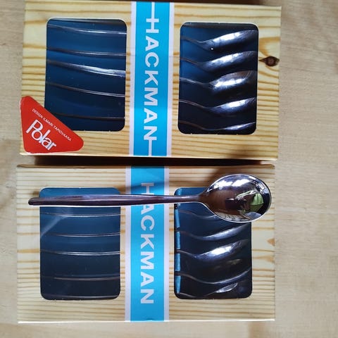 Hackman polar sarjan ruokalusikka ja veitsi.