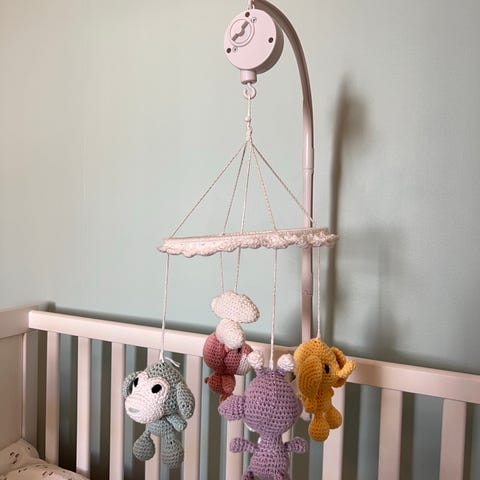 Erittäin hyväkuntoinen ja vain hetken aikaa ehtinyt olla käytössä Done by Deer-merkkinen mobile.😊 Soi/ääni kuuluu moitteettomasti. Oikein hyvä seuraavalle pienelle käyttäjälle 🌸