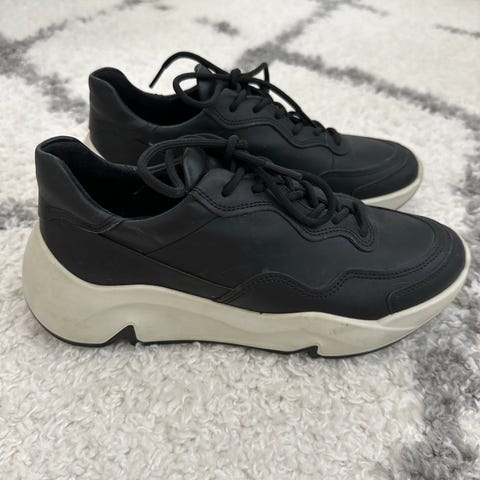 Ecco tennarit, koko 38. Vaaleat nauhalliset kengät, joissa verkkokangasosat ja synteettinen päällinen. Pohja on musta ja kuvioitu. Soveltuvat arkikäyttöön ja vapaa-aikaan. Kengissä näkyy kulumaa erityisesti kärjen alueella, mikä kannattaa huomioida kuntoa arvioitaessa.Vain nouto ja maksu käteisellä.
