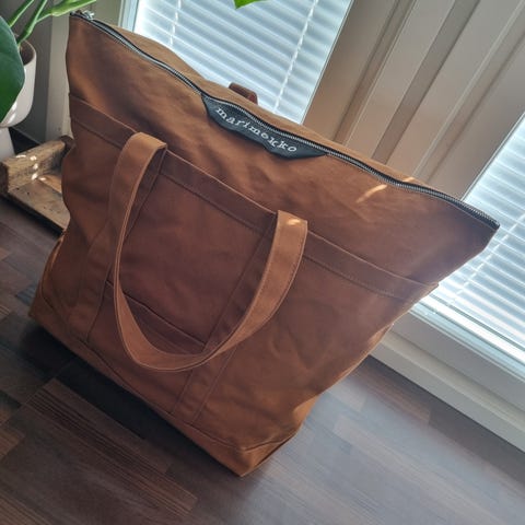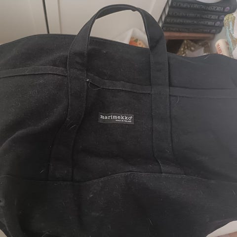 Marimekko kangaskassi unisex-käyttöön. Musta, yksivärinen kangaslaukku, jossa kantokahvat ja vetoketjusuljenta. Sisäpuolella vetoketjutasku ja Marimekko-merkintä. Sopii arkilaukuksi, kauppakassiksi tai viikonloppulaukuksi. Materiaali: kangas (puuvilla). Väri: musta.