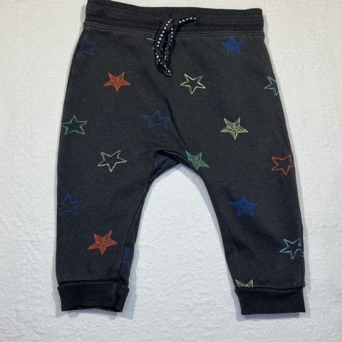 H&M vauvan housut, koko 62. Unisex-malli. Materiaali puuvillaa. Housuissa on raidallinen kuosi ja joustava resori vyötäröllä ja lahkeissa. Edessä pieni merkki, jossa teksti “I love mum & dad”.