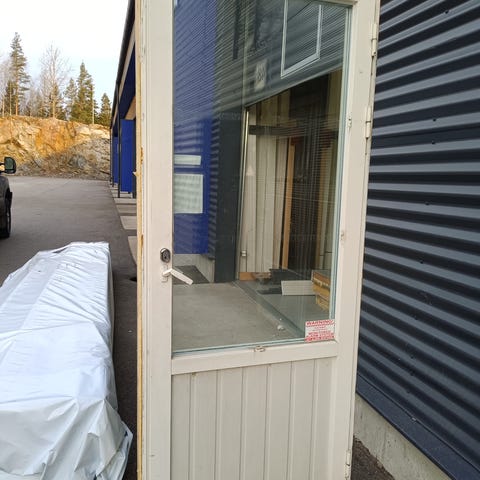 Levikkeellinen ulko-ovi lasilla, karmimitat 140x210, karmin syvyys 175 mm.