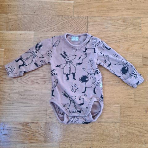 Lindex vauvan body, koko 62. Pitkähihainen unisex-malli, väriltään sininen. Valmistettu puuvillasta. Kankaassa koirakuosi.