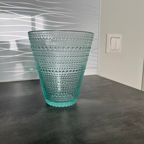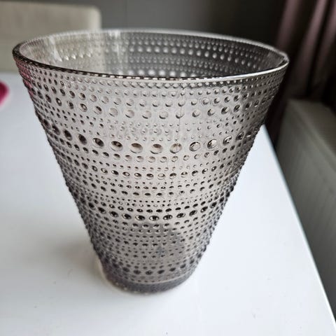 Uusi Iittalan Kastehelmi maljakko. Väri pellava.
