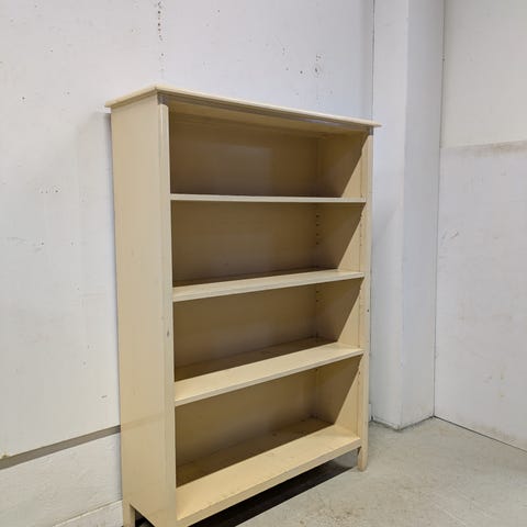 Sympaattinen vanha puinen hyllykkö myytävänä. Pinta aikanaan maalattu. Maalissa ajan tuomaa jälkeä paikka paikoin. Ei hajuja. Hyllyt korkeussäädettävät. Rakenne tukeva.