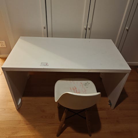 Annetaan Ikean lasten sänky. Kunto muuten hyvä, mutta kulumaa etupaneelissa, samoin liimajälkiä tarroista.