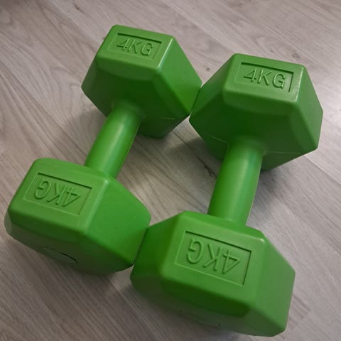 Kaksi Adidaksen 2 kg:n käsipainoa, yhteensä 4 kg.