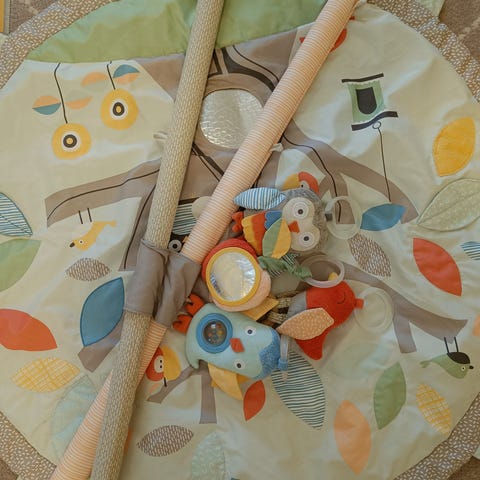 Myydään hyvässä käytetyssä kunnossa oleva vauvan Fischer Price leikkimatto 🤍 Matosta löytyy varmasti joitakin tahroja ja pöllö ei enää huhuile narusta vedettäessä, mutta muuten toimiva peli. Lelukaaren saa asetettua ylös tai lappeelleen , jolloin vauva saa viihdykettä masullaan ollessaan. Keskellä olevaan peiliin saa toiselle puolelle esimerkiksi vaihdettua valokuvia vauvalle katseltavaksi tai puhelimen ottamaan vauvasta videota 🥰